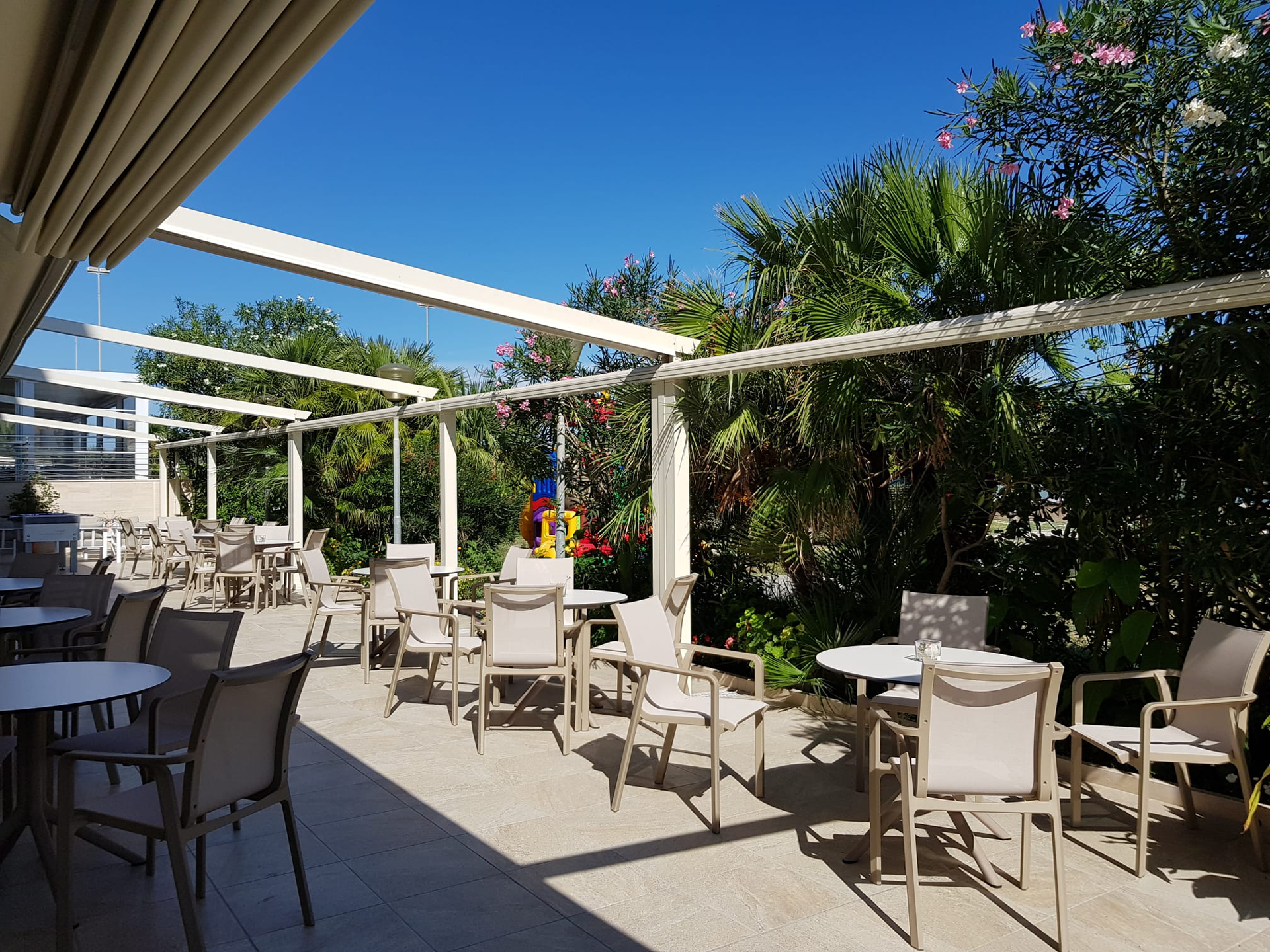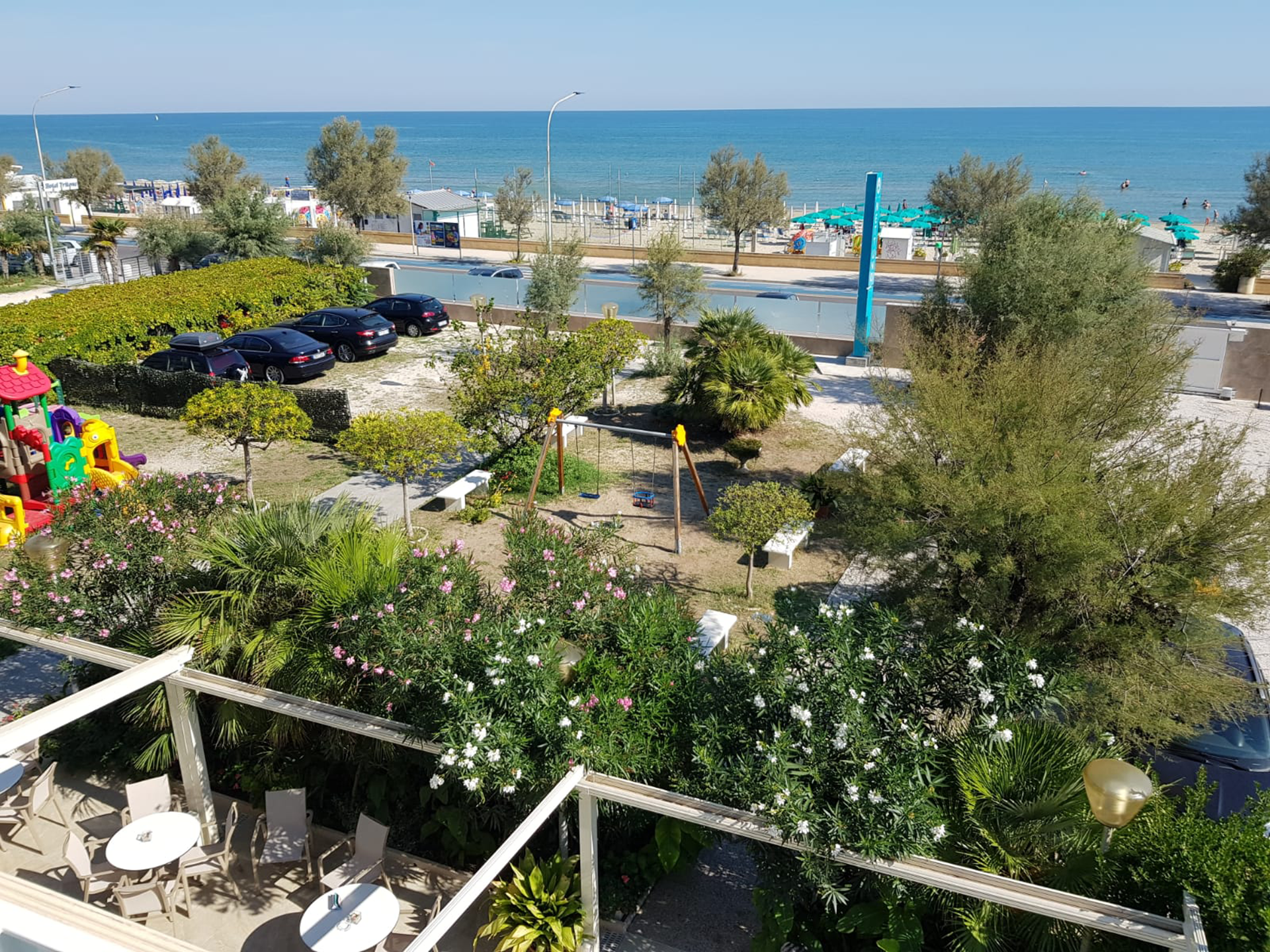 E’ presente un bellissimo giardino alberato con giochi per i bambini e parcheggio gratuito all’interno dell’Hotel, recintato e videosorvegliato.