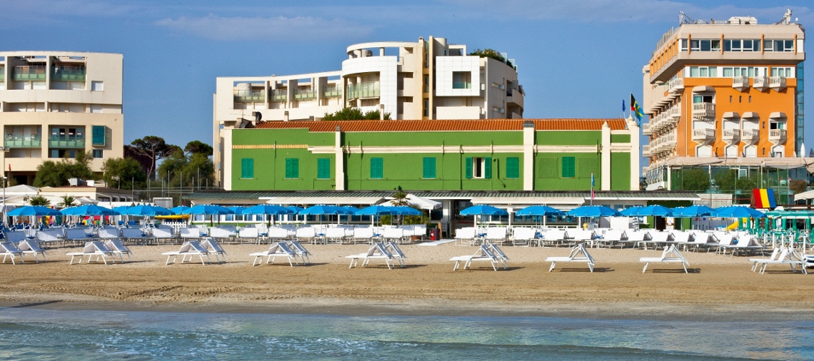 L’hotel Regina è situato in posizione incantevole al centro della spiaggia, direttamente sulla sabbia, così che i nostri clienti non hanno bisogno di cabina ed hanno quindi il vantaggio di trascorrere l’intera giornata al mare.