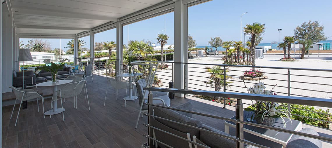 Al vostro arrivo vi accoglieremo con un drink di benvenuto e ogni giorno vi offriremo un aperitivo sfizioso nella nuova pergola bioclimatica spaziosa e confortevole con una bellissima vista sul mare a disposizione di tutti i nostri ospiti.