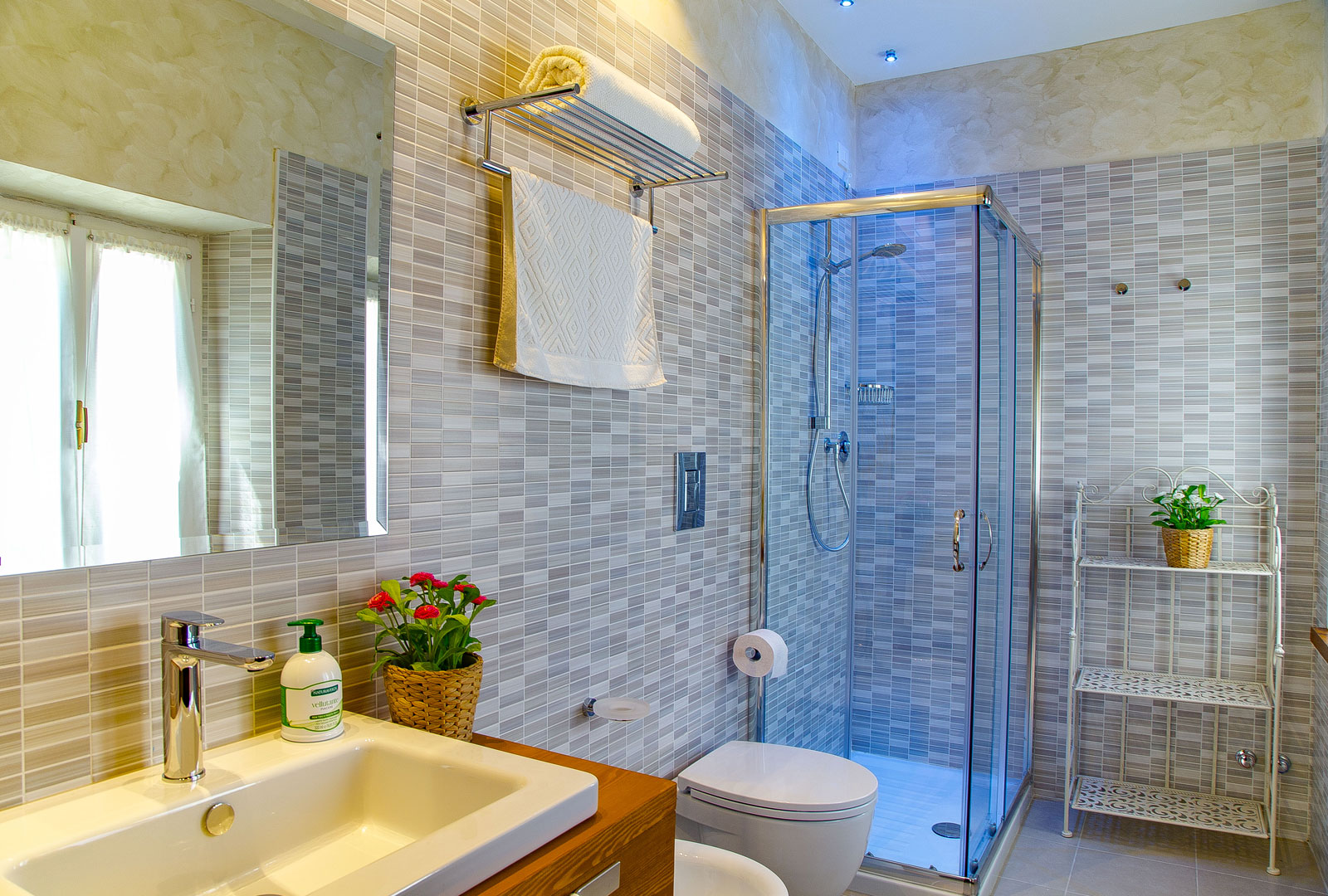 Le stanze della country house sono tutte accoglienti e curate nei minimi dettagli, tutte dotate di letto matrimoniale, riscaldamento ed aria condizionata, bagno privato con ampia e comoda doccia, asciugacapelli, minifrigo, TV e Wi-Fi gratuita.