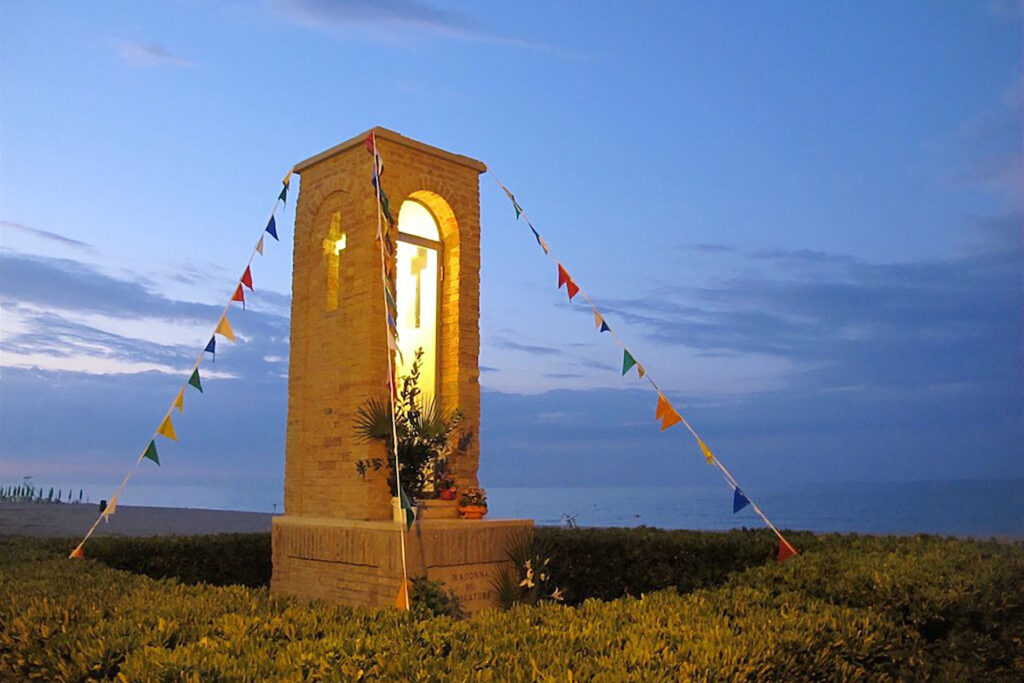 Madonnina del Pescatore: sul lungomare, questa piccola edicola a torretta è un punto di riferimento e protezione per i pescatori locali. Costruita negli anni ’30 e restaurata nel 1991, la nicchia ospita la statua lignea della Vergine e diventa luogo di preghiera durante la festa del 15 agosto.