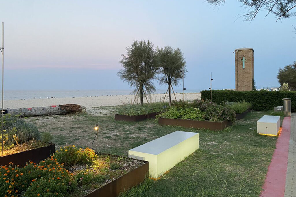 Chiesa di Sant’Antonio da Padova: originariamente costruita nel 1918 per un voto del Cav. Campari, la chiesa è stata ricostruita nel 1979 su progetto moderno con pianta circolare e cupola che ricorda il Pantheon. Al suo interno, affreschi contemporanei di Padre Marko Rupnik raccontano scene bibliche e figure di santi. Ogni anno, il 13 giugno, si celebra la festa del Patrono con una suggestiva processione verso il mare.