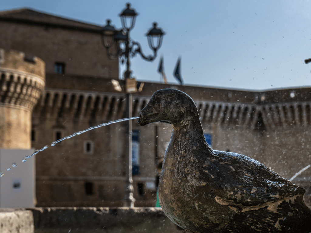 The fountain, built between 1599 and 1602, was commissioned by Francesco Maria II della Rovere to remind the population of the redevelopment of the marshy area of the Saline. Ducks symbolize the birdlife present in the wetland, while water features represent the control of the waters, once carriers of disease and now a symbol of prosperity.