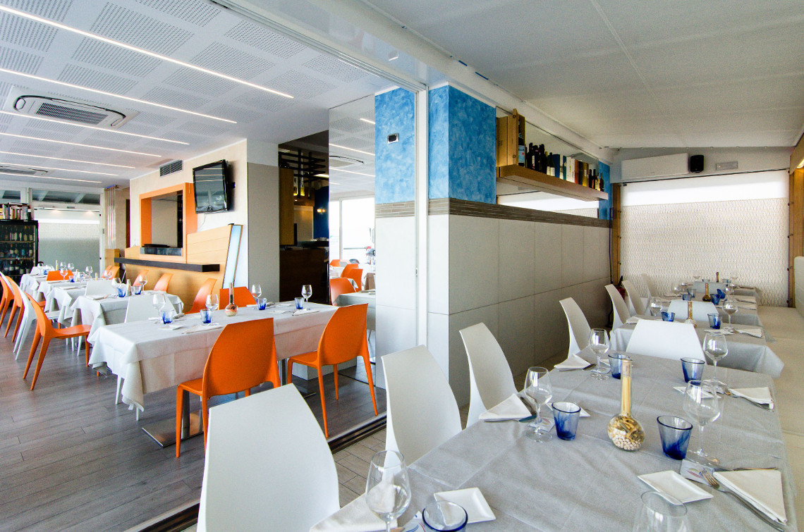 Restaurant Raggiazzurro is a small restaurant with large windows and beautiful views of the promenade. Raggiazzurro offers a wide menu of fish courses, but there are also available both meat, vegetarian and vegan dishes.