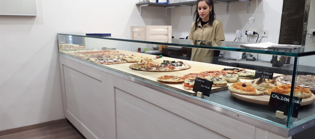 La pizzeria Pass da Manu propone una ricca scelta di pizza al taglio, al piatto e d’asporto, anche per clienti vegani e vegetariani; per chi vuole, c’è anche la